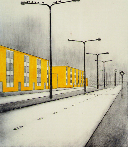 Groningen, Zonnelaan, drypoint, 40 x 50 cm, 2000