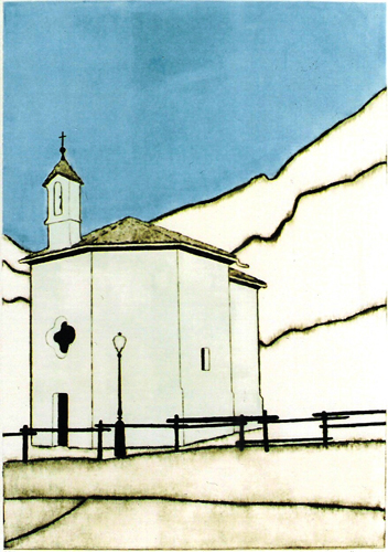 Lillaz, la chiesetta, drypoint, 42 x 60 cm, 2002