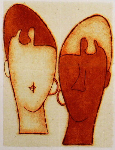Immagini speculari-4, drypoint, chine collée, 15 x 20 cm, 2006