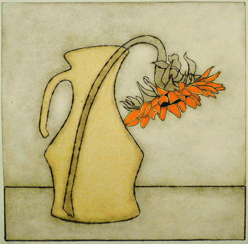 Zonnebloem, drypoint / chine collée, 27 x 27 cm, 2013