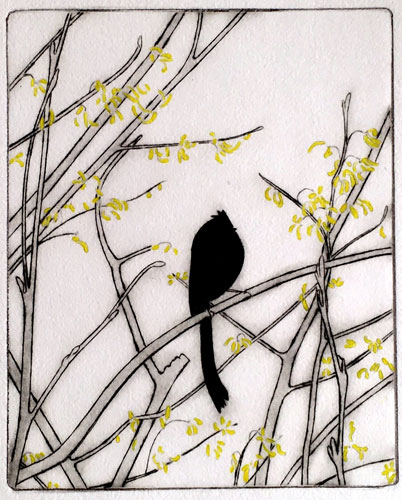 Amamelide in fiore-1, drypoint, 20 x 24 cm, 2020