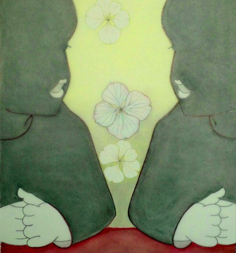 2x Maartje, oil pastels, colour pencils on transparent paper, 28 x 32 cm, 2009
