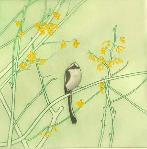 Amamelide in fiore-1, mixed media on transparent paper, 23 x 23 cm, 2020