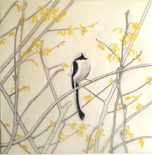 Amamelide in fiore-2, mixed media on transparent paper, 23 x 23 cm, 2020