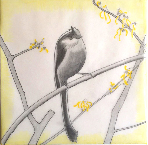 Amamelide in fiore-3, mixed media on transparent paper, 23 x 23 cm, 2020