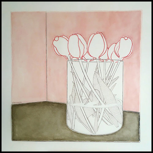 Natura morta 46, mixed media on transparent paper, 50 x 50 cm, 2021